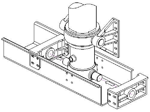 將第2個(gè)油缸支座安裝到支撐架上,并且調(diào)整油缸位置,確保油缸和底盤在一個(gè)中心線上,油缸與支座之間的最大間隙為2毫米,為了保持油缸處于正確位置,可在油缸和油缸支撐架橫梁間插入木契,調(diào)好位置后,擰緊螺栓固定油缸支座。